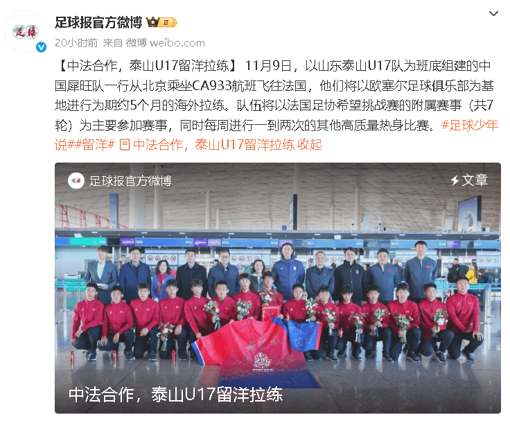 我们知道法国是足球强国,每届世界杯,他们都是世界杯冠军争夺者,拿世界杯冠军拿到手软,他们拥有让大家喜欢的法甲,走出像姆巴佩这样的巨星,他们拥有世界最优秀的青训体系,在这里每年都有很多国家青训在这里训练,山东泰山决定将U17队为班底,将这支球队派到法国留洋拉练,而且长达5个月,能不能开启中国足球的希望?
