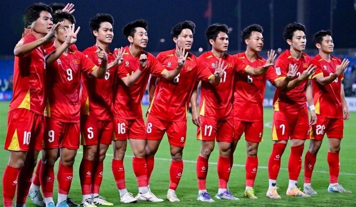 韩国队从比赛一开始就展现了强大的控制力,他们的控球率超过七成,射门次数也远超越南队。 但越南队踢得非常聪明,他们稳固防守,伺机反击。 第30分钟,他们的战术收到了成效。 越南队在左路打出精妙配合,阮庭北突破后倒三角回传,跟进的阮国越在禁区弧顶处迎球怒射,皮球如出膛炮弹般飞入球门死角。 1比0,越南队意外取得领先。