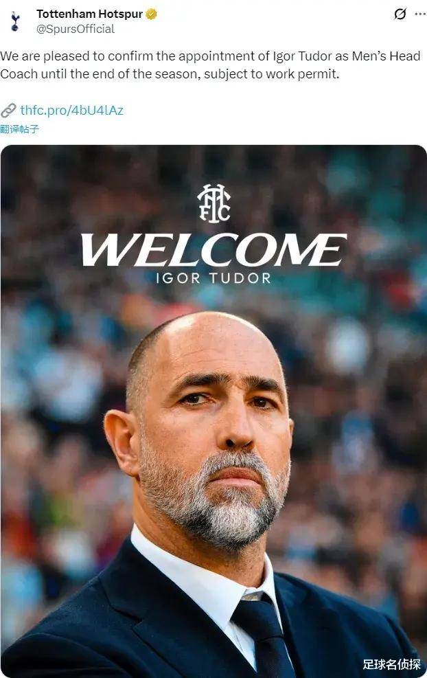 官方消息,托特纳姆热刺足球俱乐部正式宣布任命安格洛斯·图多尔为主教练,合同将直至本赛季结束。据罗马诺透露,这份合同不包含延长条款。