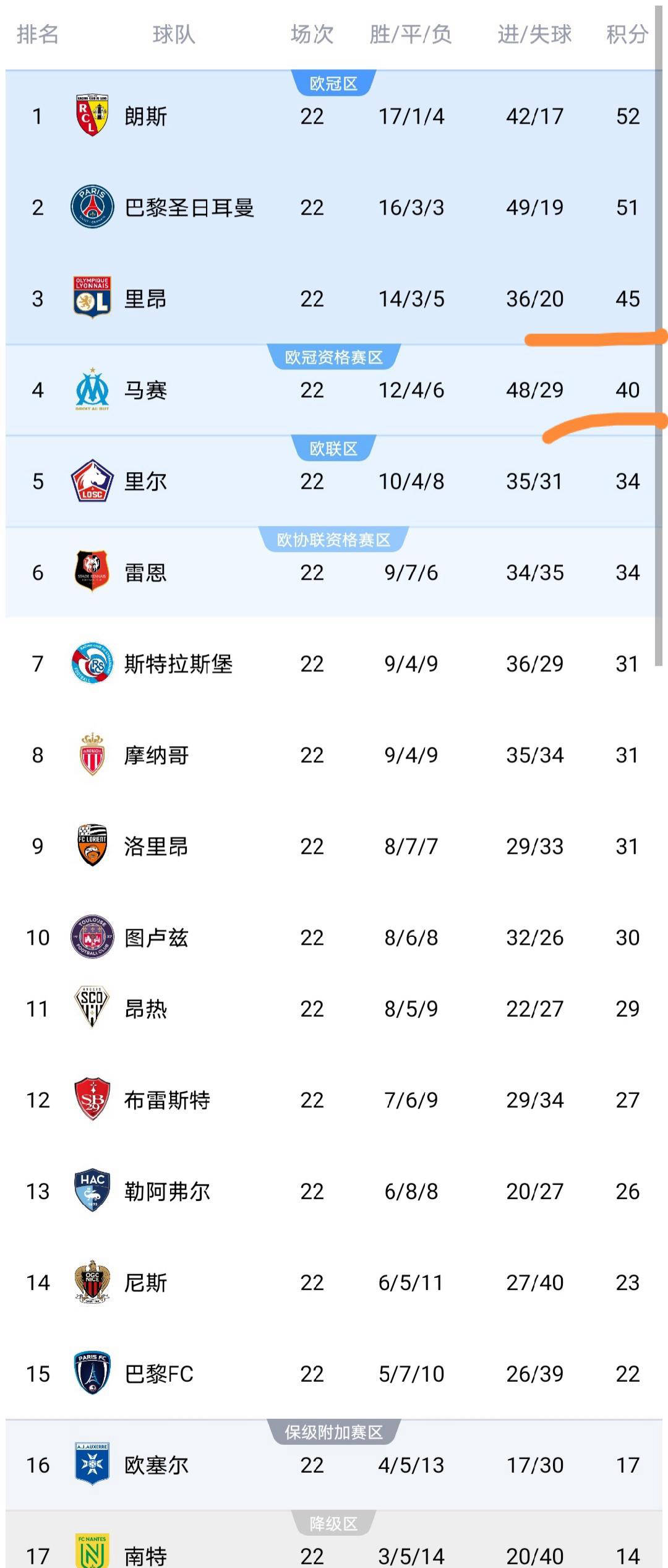 上游球队方面,里昂继续保持强劲态势,凭借战胜尼斯积攒到45分,稳稳占据第3的位置,使得尼比赛后仍停留在23分排名第14,形势稍显被动。